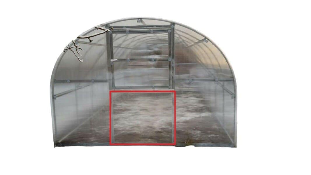 Vrata so dobavljena brez polikarbonatne prevleke, kar omogoča prilagoditev glede na obstoječi rastlinjak. Za popolno uporabo je potrebno dodatno naročiti polikarbonatni premaz dimenzije približno 1,05 x 2 m.