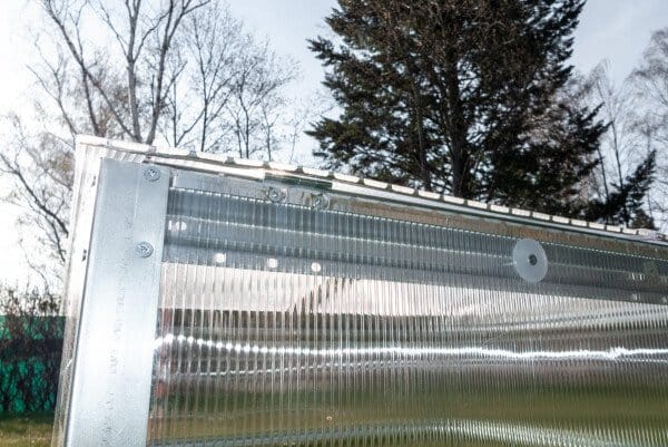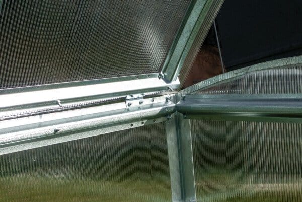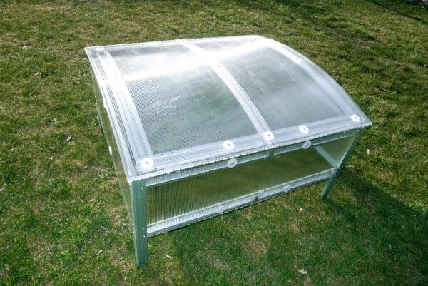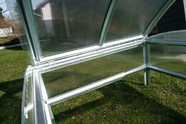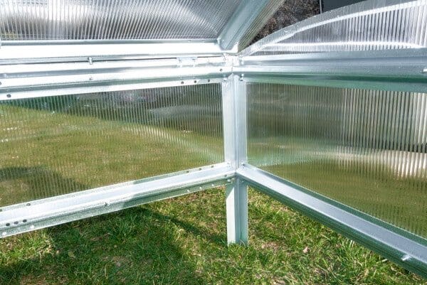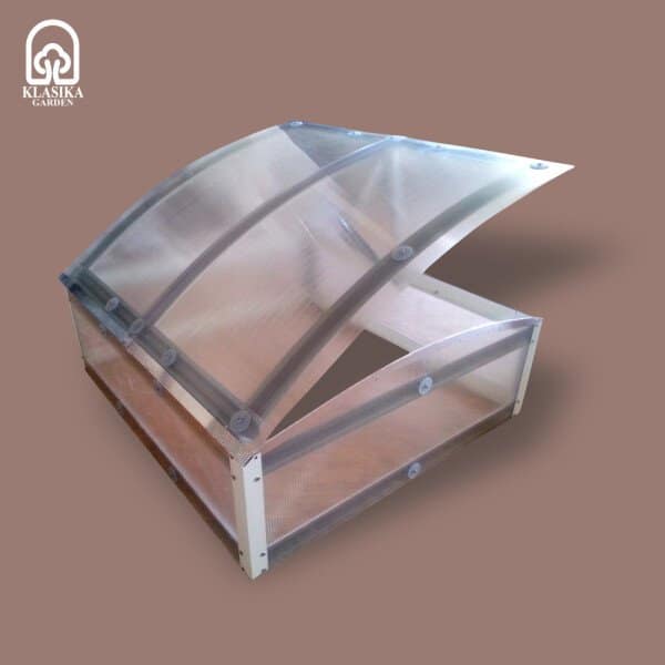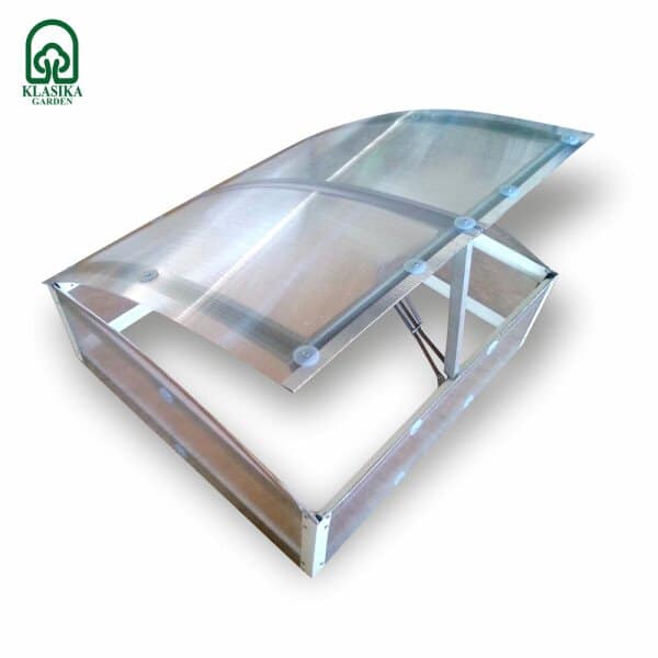 Polikarbonatni pokrov zagotavlja dobro toplotno izolacijo in prepušča dovolj svetlobe za optimalno rast.