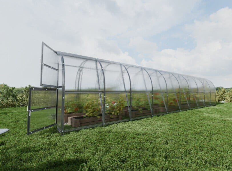 Rastlinjak je opremljen z dvostranskimi vrati in dvema oknoma, kar omogoča učinkovito prezračevanje. Možna je tudi nadgradnja z avtomatskim odpiranjem loput.