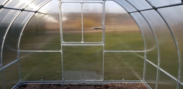 Rastlinjak je opremljen z dvodelnimi vrati in dvema oknoma, kar omogoča učinkovito prezračevanje. Možna je tudi nadgradnja z avtomatskim odpiranjem strešnih oken.