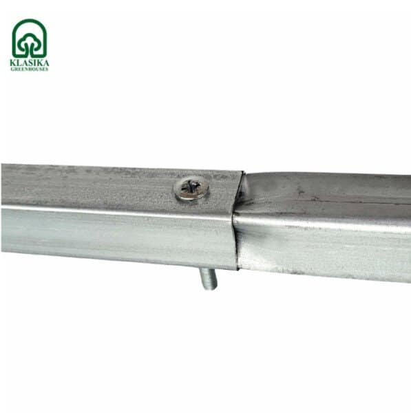 Konstrukcija je izdelana iz pocinkanih jeklenih cevi dimenzije 20×20 mm, kar zagotavlja stabilnost in odpornost proti koroziji. Razmik med loki 0,67 m omogoča dobro nosilnost konstrukcije in večjo odpornost na vremenske vplive. Povezovanje z vijaki M5 omogoča hitro in enostavno montažo brez potrebe po varjenju.