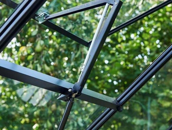 Barva odpirača je temno zelena, kar omogoča estetsko usklajenost z rastlinjakom.